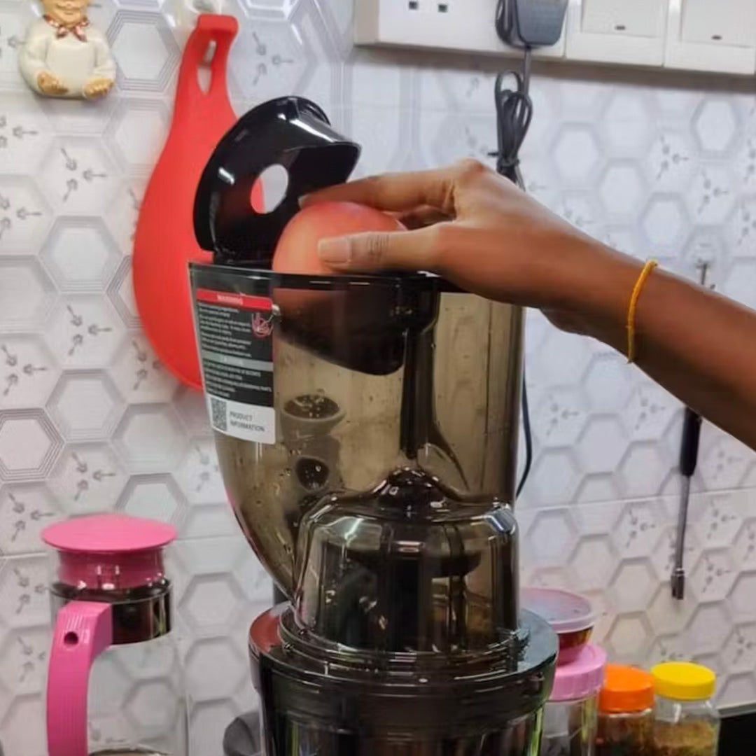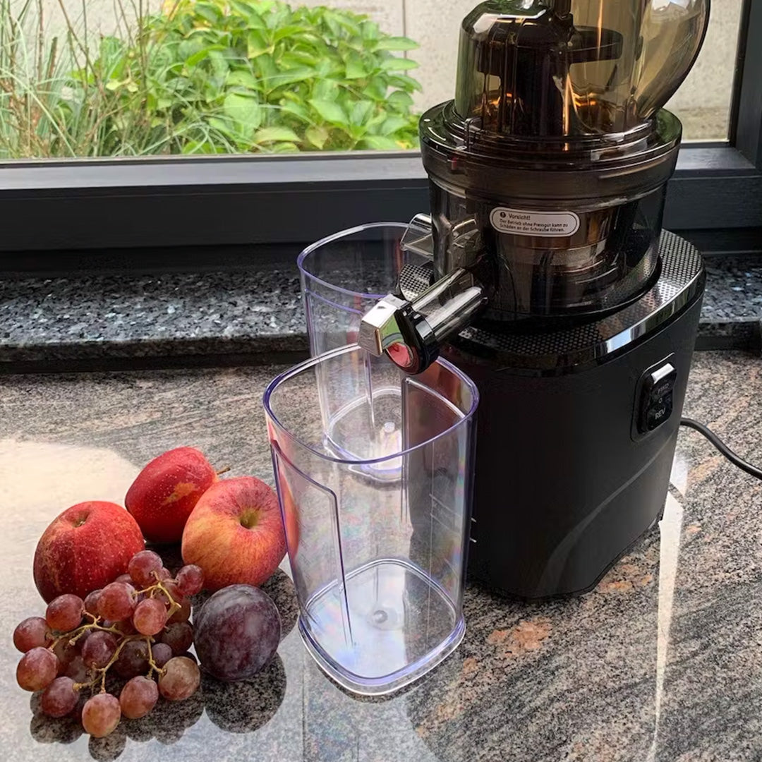 Upgradovaná velikost plnícího otvoru pro celá jablka. Extra široký plnicí otvor pojme celé suroviny, čímž se zkracuje doba přípravy.