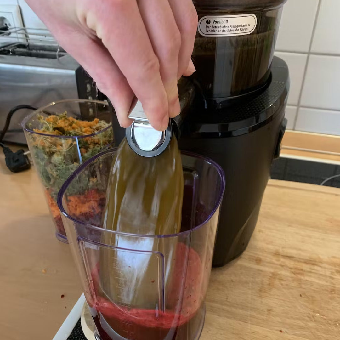 Navíc je uplatněna technika chytrého krájení, kdy je přísada automaticky řezána horní částí šneku, což umožňuje snadnější odšťavňování.