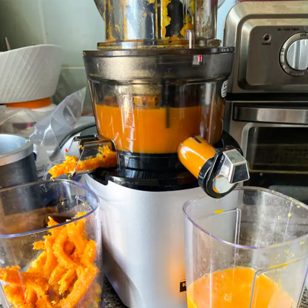 REVO830 přináší revoluci ve vašem odšťavňování, optimalizované pro mrkev a celer.