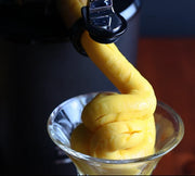Ingredients Using primarily frozen ingredients ensures that your sorbet attains a lusciously thick and icy texture. You can either purchase pre-frozen ingredients or freeze fresh ingredients yourself. Whichever method you choose, it is crucial that the ingredients are frozen for at least 8 hours or overnight. This duration ensures that the ingredients reach the required level of frozen solidity. Insufficient freezing time may cause the ingredients to get stuck in the strainer and for the sorbet to have a pulpy texture. Before using your frozen ingredients, it is recommended to thaw them for a minimum of 5 minutes. Thawing the ingredients allows the juicer to effectively crush and process them without encountering difficulties. Failure to thaw the ingredients adequately may put excessive strain on the juicer, potentially leading to breakage or damage. The latter also applies to the insertion of ice. Ice should not be inserted into the juicer. However, be careful to not over-thaw your frozen ingredients or your sorbet will have a drippy, slushy-like consistency.
